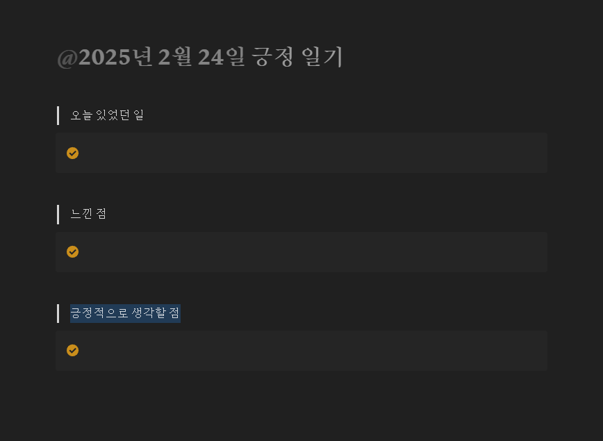 지금까지 노션 긍정 일기를 공유하며 수정 방법을 함께 알아봤습니다.