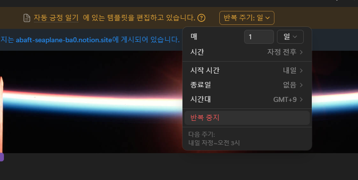 - 편집 페이지 상단의 [반복 주기]를 확인합니다.