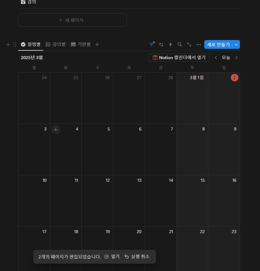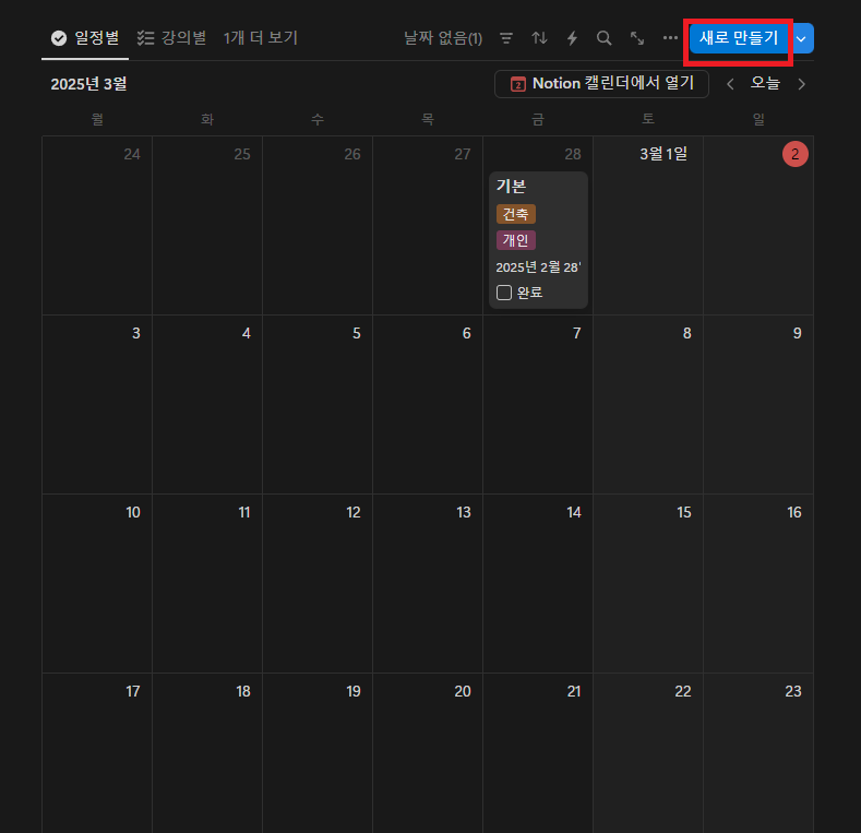- [일정별] 데이터베이스에서 [새로 만들기]