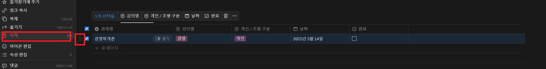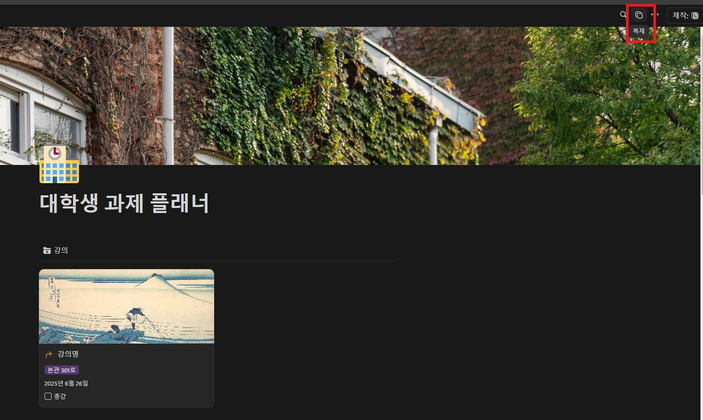 노션 대학생 과제 플래너 수정 방법 안내