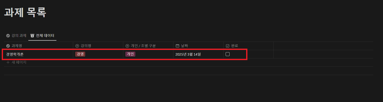 📌 체계적인 과제 정리: 강의별 혹은 기한별로 정리하여 어떤 과제가 남았는지 쉽게 파악할 수 있습니다.