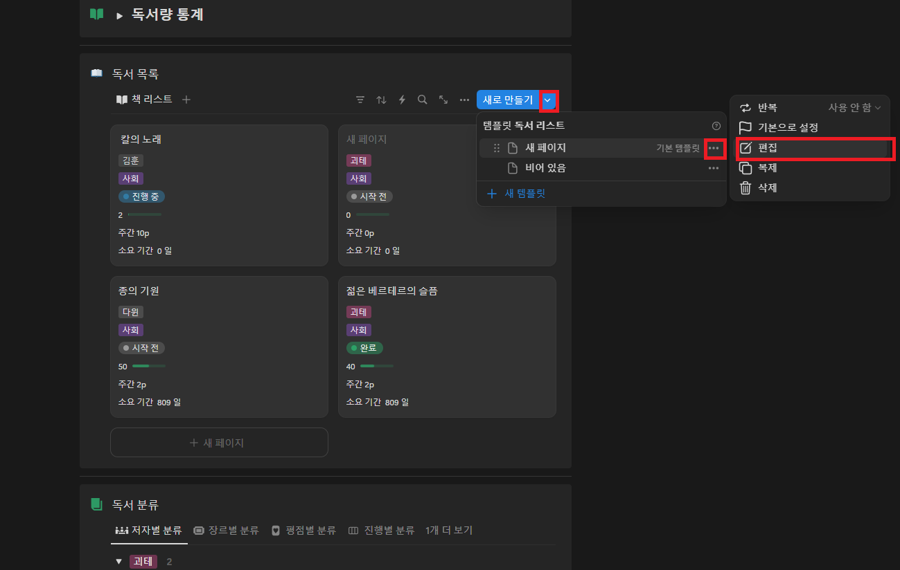 노션 독서 리스트 수정 방법