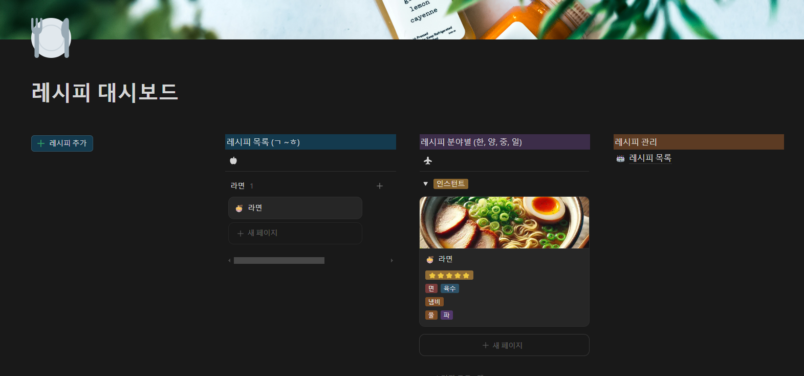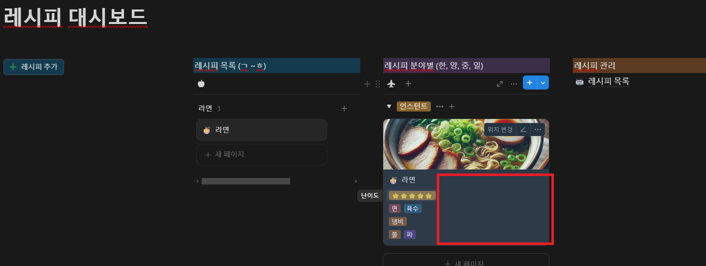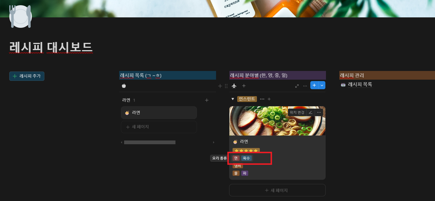 레시피 대시보드 | Notion