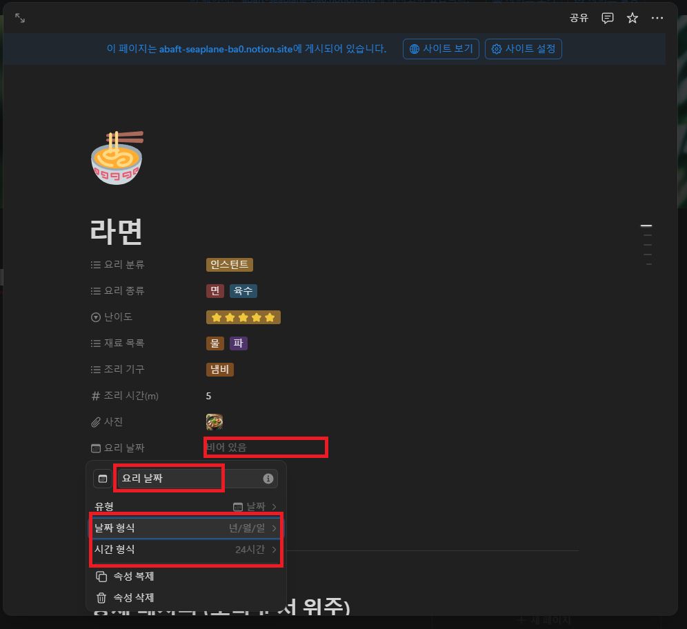 3️⃣ 요리 날짜 속성 추가하기
