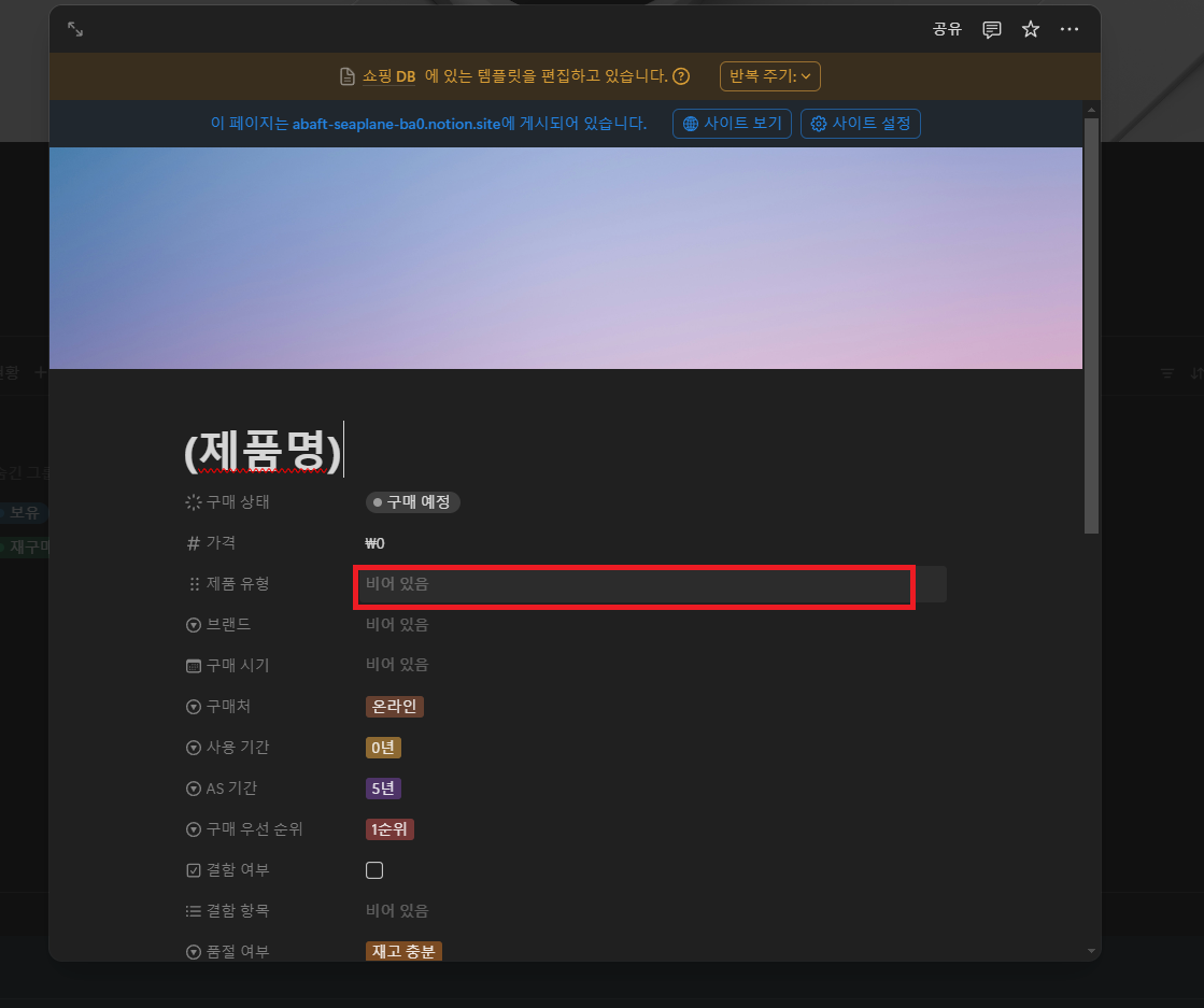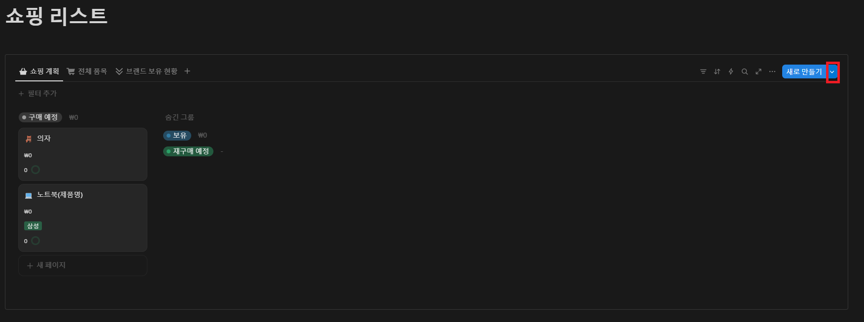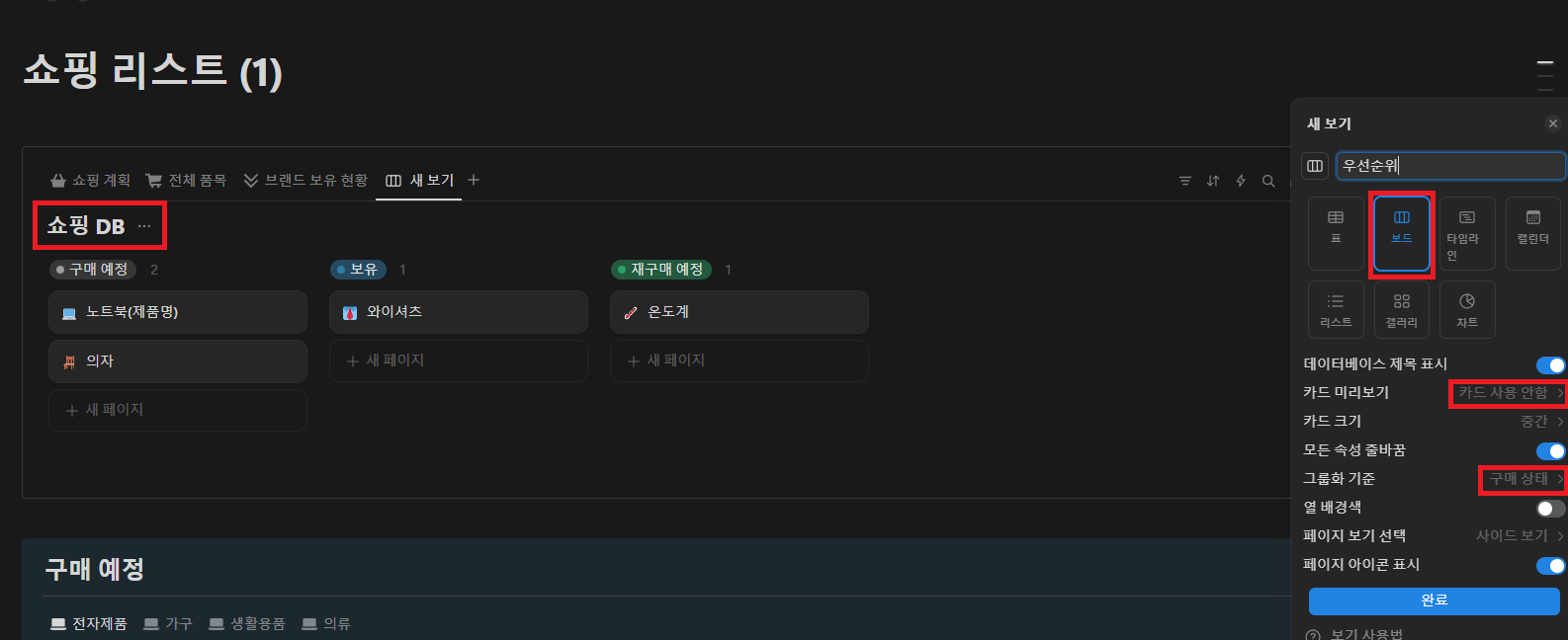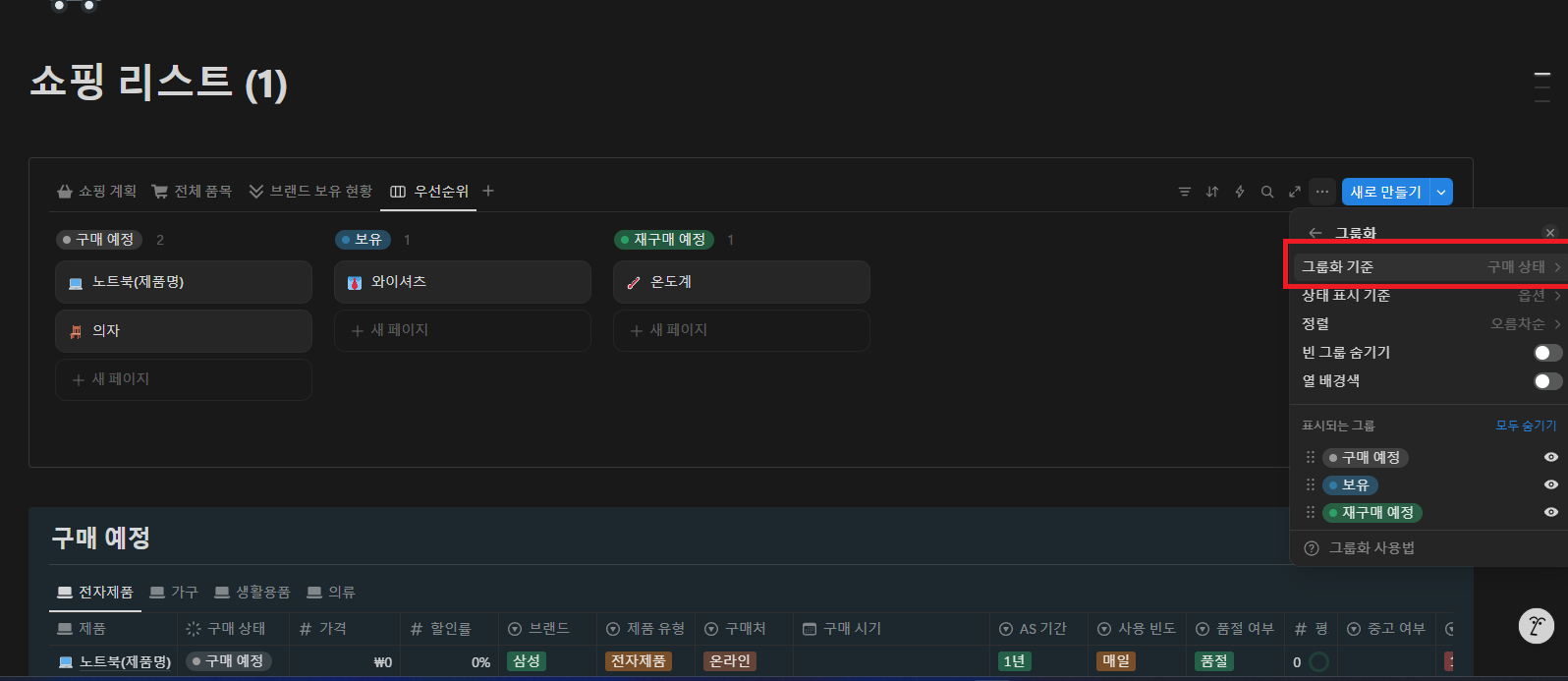 📊 노션 쇼핑 리스트 양식 수정 방법