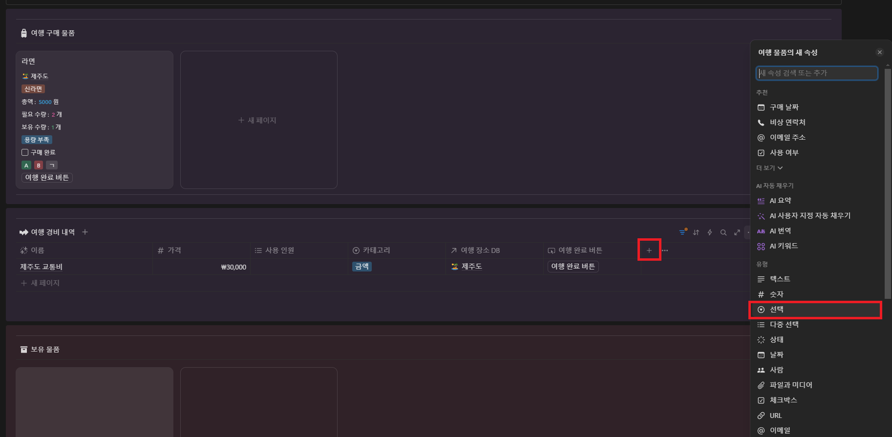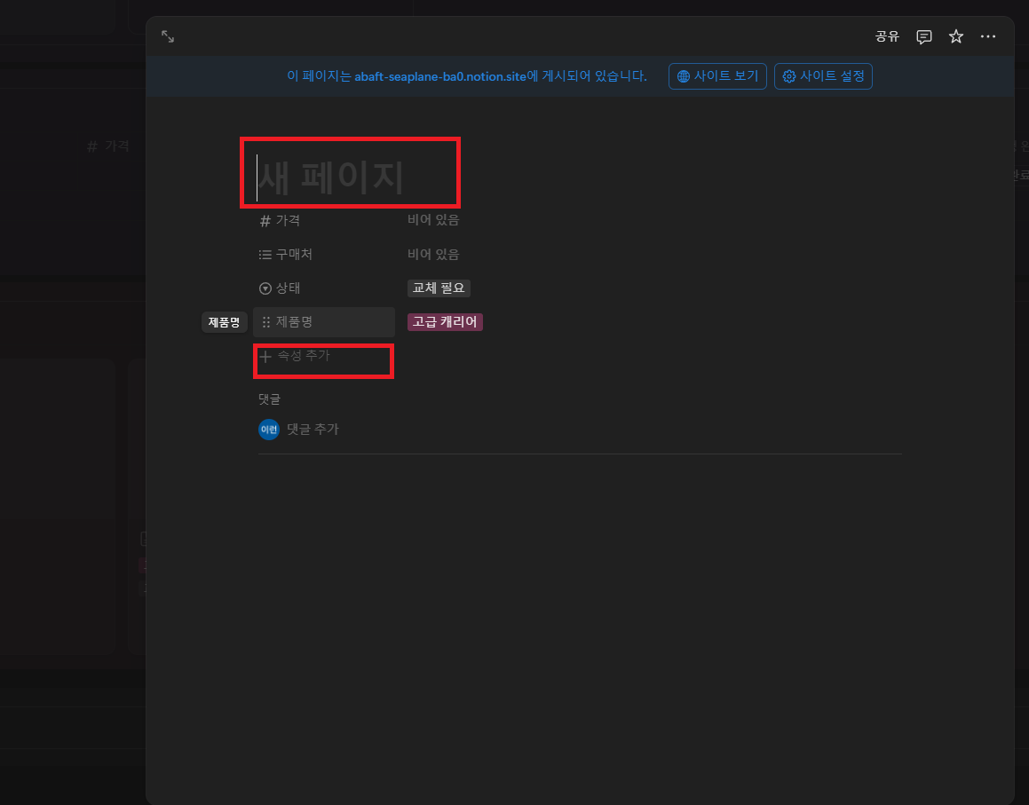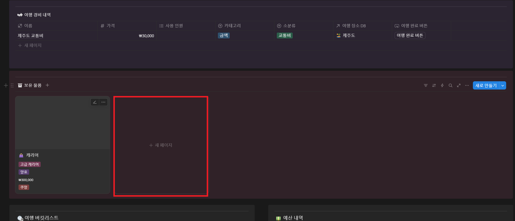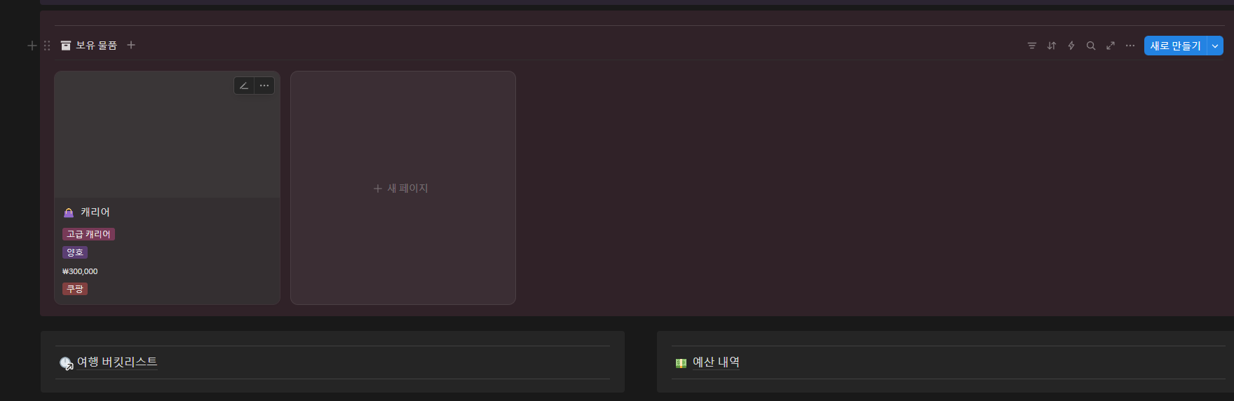 - [보유 물품]의 [+ 새 페이지] 클릭