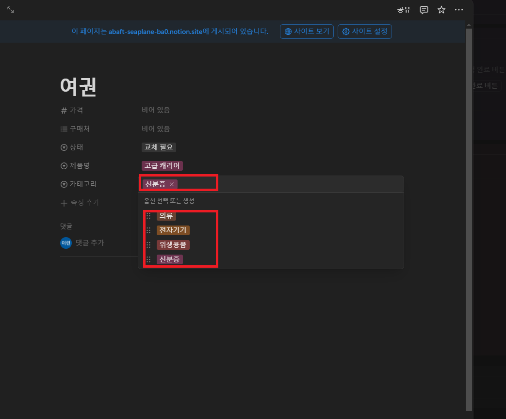 📌 예시: "아이템에 여권과 여러 카테고리를 추가하고 싶어요."