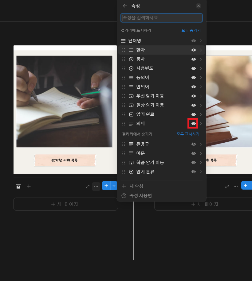📌 예시: “암기할 어휘 목록에서 단어의 의미를 안 보이게 하고 싶어요.”