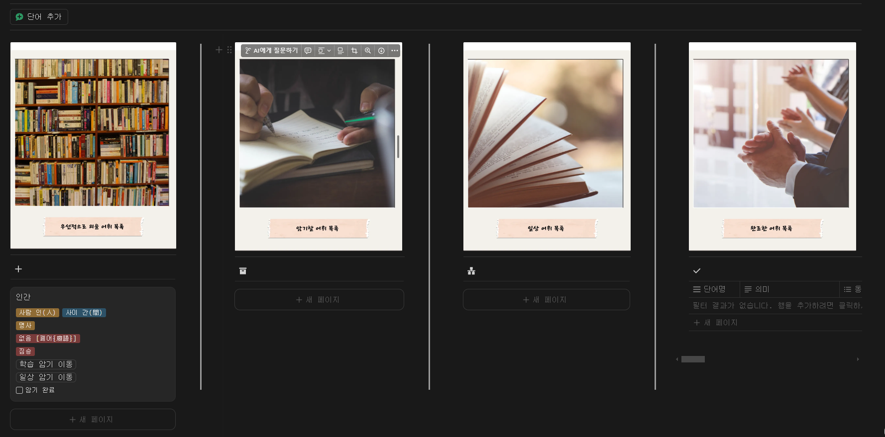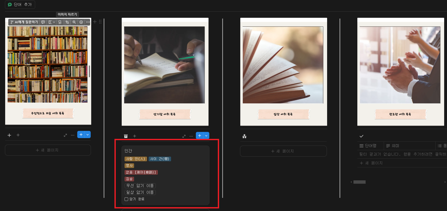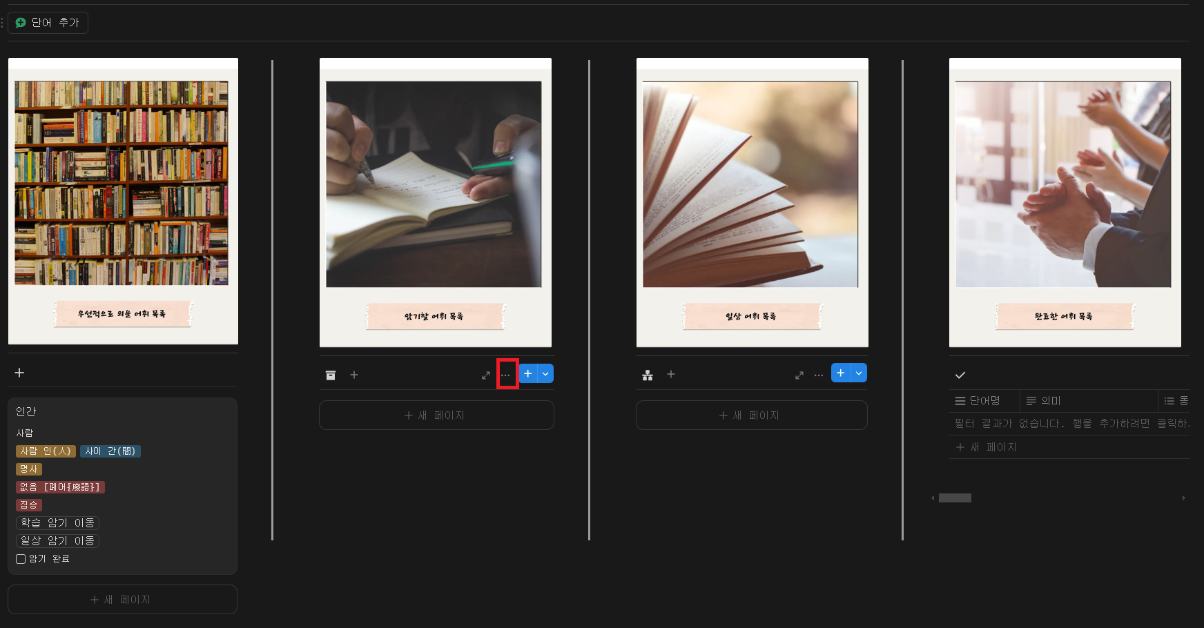 - [암기할 어휘 목록]의 [데이터베이스]에서 […]를 클릭합니다.