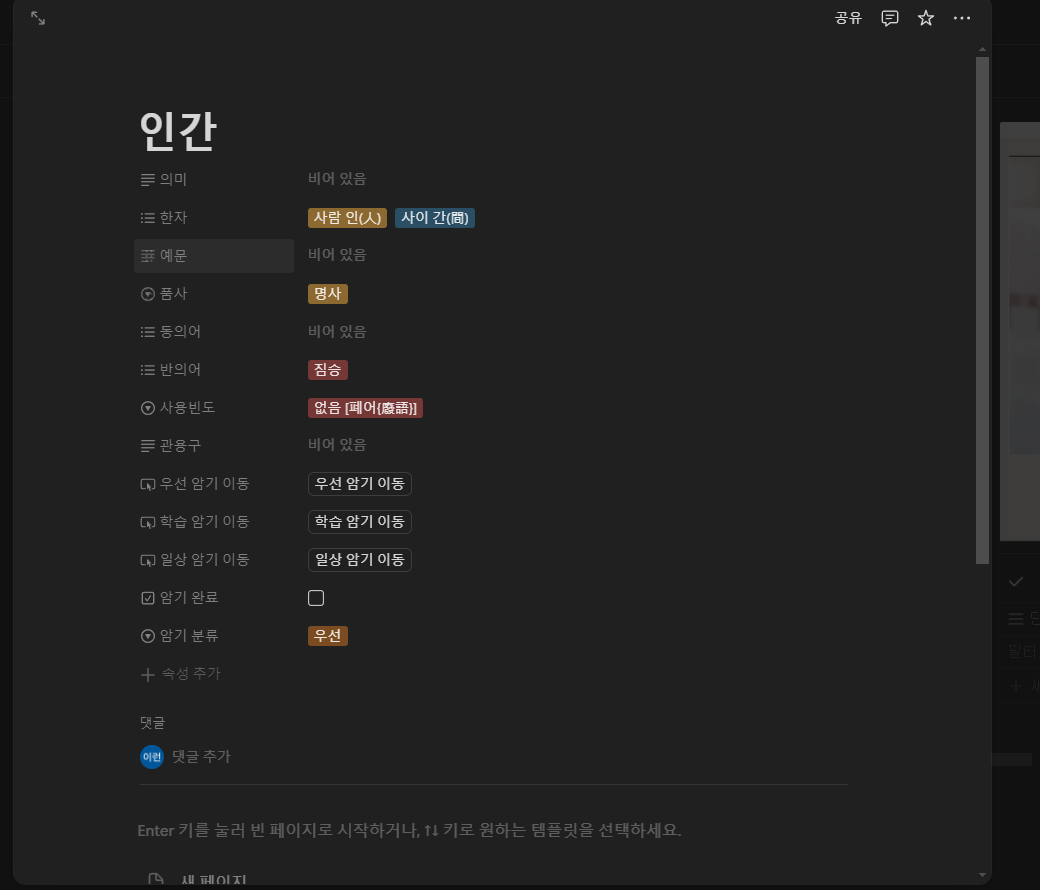 노션 한글 어휘 단어장 템플릿을 무료로 공유합니다. 단어를 분류별로 우선 암기, 학습 암기, 일상 암기 등으로 나눌 수 있고 예문, 뜻, 품사 등 다양한 정보를 함께 관리할 수 있어 국어 공부, 수능 대비, 한국어 교육 등에 효과적으로 활용됩니다. 이외에도 수정 방법까지 상세히 안내해 드립니다.