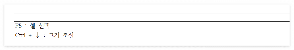 -표가 파란색으로 드래그된 상태에서 [Ctrl + ↓]를 눌러준다면, 단축키로 표를 손쉽게 늘릴 수 있습니다!