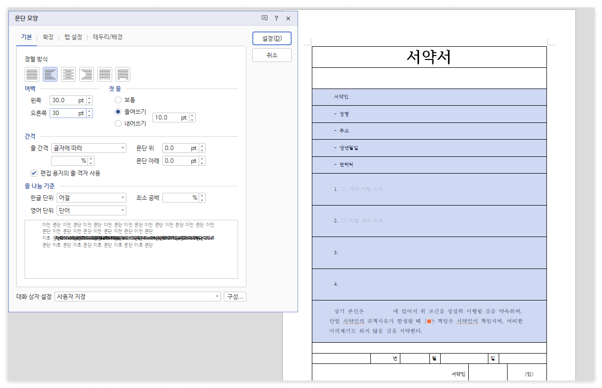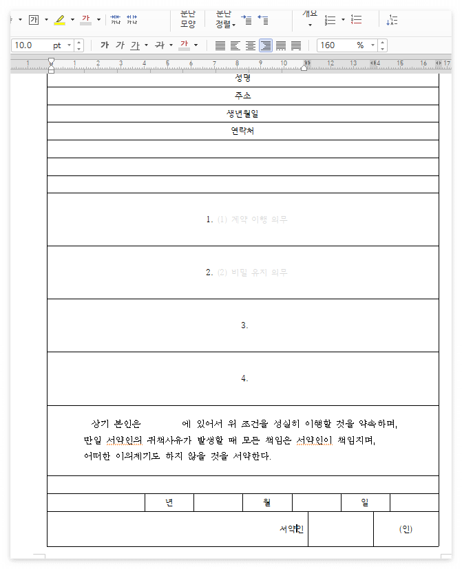 + 한글 문서로 서약서 같이 만들기