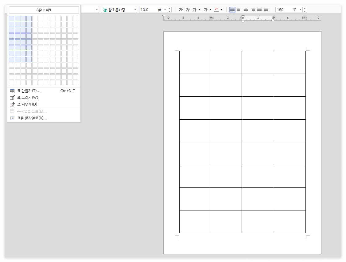 3. 표의 크기 조절 및 문단 모양, 글자 크기 설정