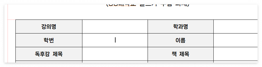 ➡️ 작성자 : 성함 기입란을 기본으로 기재했습니다. 원하신다면 학번, 전공 등 기본 정보를 추가할 칸을 남겨뒀습니다.